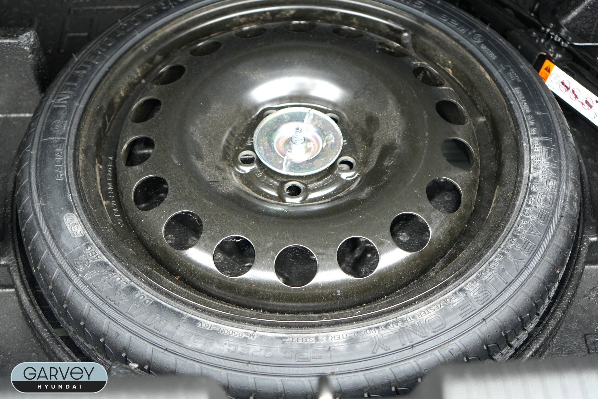 - Tire, T115/70R16, blackwall, compact spare